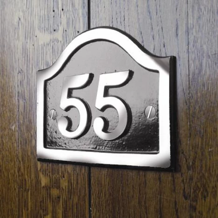 Cast from brass, this classic arched house sign has been finished in black and is the perfect way to add a traditional touch to your home. Featuring a polished chrome border and numbering, this house sign combines its classical design with subtle modernity for a truly unique piece of metalwork. Complete with customisable numbers, two pre-drilled screw holes, and all necessary fixings in a matching finish.