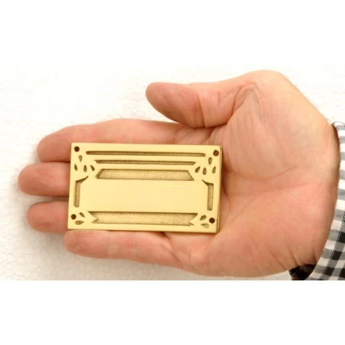 Rectangular engravable plate with stunning Art Deco detail around the edges. This engraved sign is produced from solid brass, not sheet brass. The edge detail is unusual, stylish and rare to find.