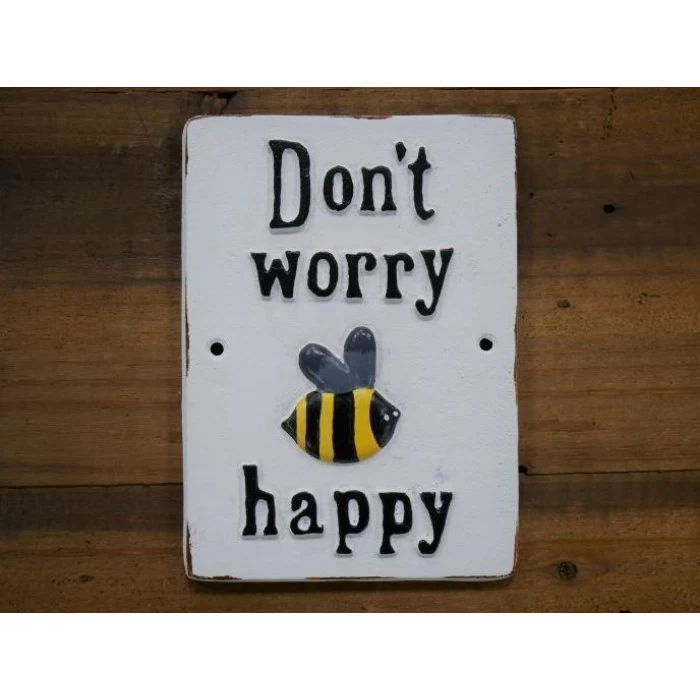 A lovely addition to any home, this hand-painted sign has been expertly crafted from robust cast iron and is the perfect positive daily reminder. Finished in white, this sign features bold black ‘DON’T WORRY, BEE HAPPY’ lettering and a little bee motif adorning its front. Perfect for placement within a lounge, dining room, or office setting, this wall mounted design comes complete with two pre-drilled fixing holes for easy installation.