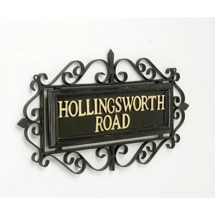 This gorgeous Belgravia Ornate Wrought Iron Scrolled Sign, is a great addition to any lamppost. This sign simply bolts onto our standard lamppost. The wrought iron frame is available in a tough black finish, and you can choose the colour of the sign, from Black, Maroon, White, Green or Blue. Shown her is the black sign with shiny bright chrome letter.