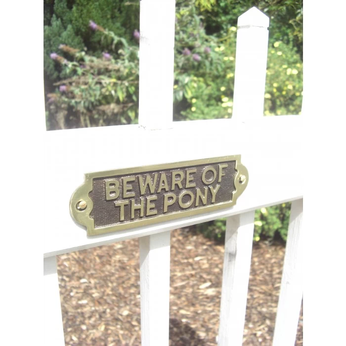 The elegant gate sign has been traditionally cast in brass and is an ideal way to make visitors aware of any ponies that may be roaming free within your grounds.