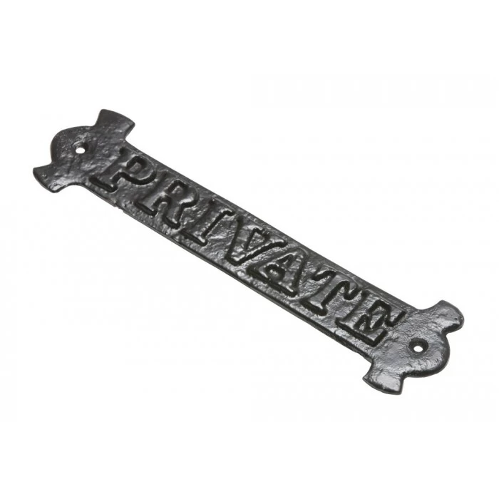 Simple yet classical in design this iron private sign has been traditionally cast and features bold, capital lettering. The black iron private sign is a sleek addition to gates and doors, helping to ensure passers-by and visitors are aware of private rooms or areas.