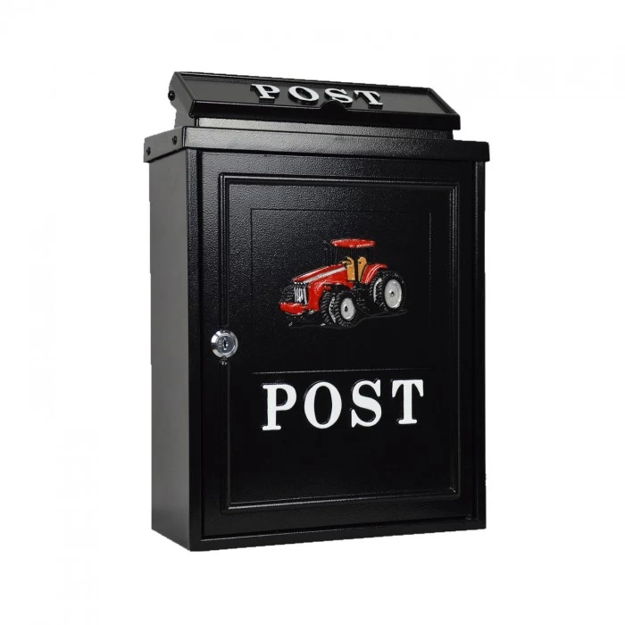 Our Black & Red “Oxford” Tractor Post Box is manufactured by hand using galvanised steel and hand cast aluminium detailing to the door and letter flap. All finished in a black powder coat paint with a red, hand-painted tractor motif.