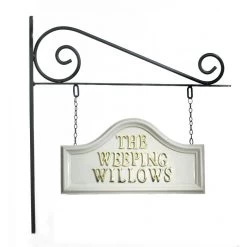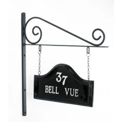 Forged from wrought iron these decorative brackets screw onto a wall from which you can hang your double sided plaque.