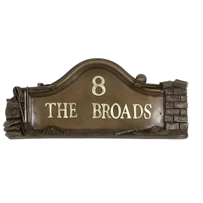 Delightfully unusual in design, this unique plaque is an ideal feature for newly built homes, renovation projects or even the house of a proud builder. The bronze effect house sign is framed by two pillars of brick work like detailing, as though the name plaque is being built in to your home.