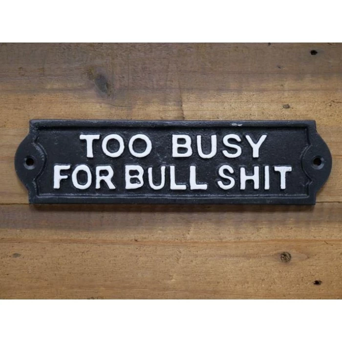 A must-have for any quirky home office, workshop, or studio setting, this risqué sign has been handcrafted from robust cast iron and finished in black. Complete with bold white ‘TOO BUSY FOR BULLSH*T’ lettering across its front, this sign has been specifically designed for wall mounting and will add ample personality to your chosen space for many years to come. Complete with two pre-drilled fixing holes for easy installation.