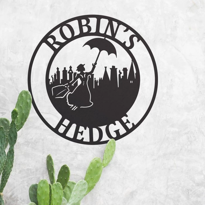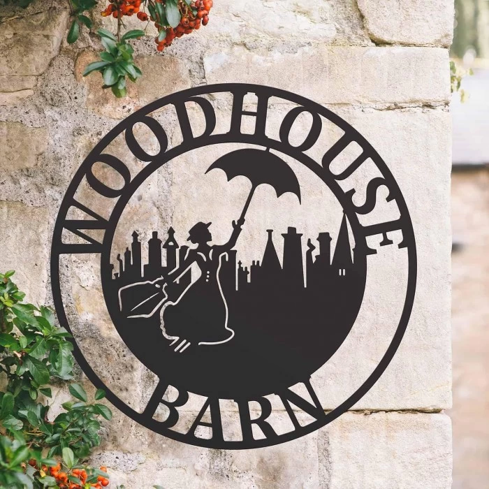 Designed and crafted by our in-house creative team, this fantastic house sign will add style and character to your entranceway. Created using robust steel and finished in a powder-coated midnight black finish, this house sign features a stunning motif of the iconic character if Mary Poppins, elapsed in front of a stunning London cityscape skyline inside the circular house sign.