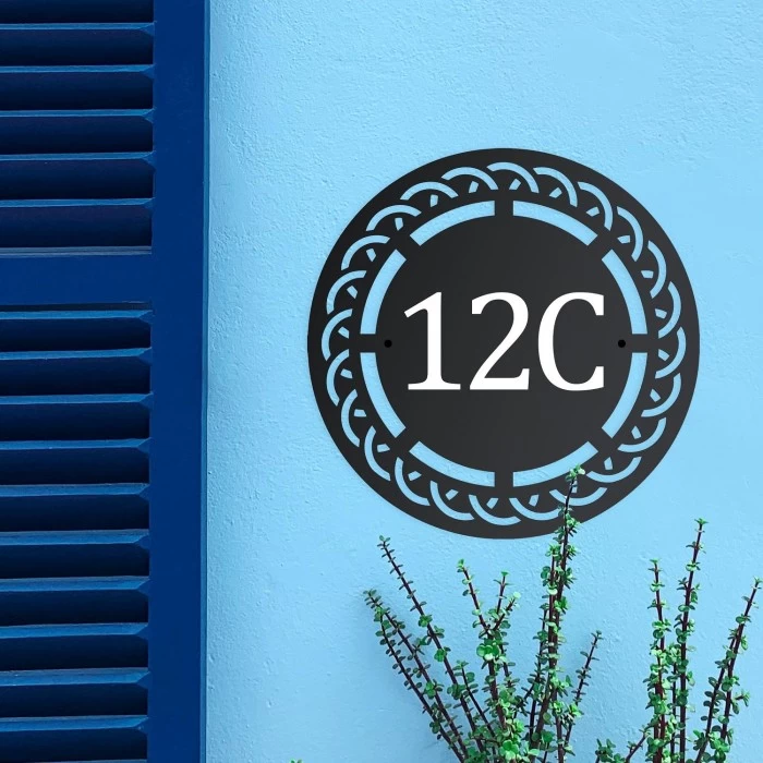 Crafted from high quality steel and finished in a sleek and modern black finish, this house number sign features a gorgeous cut out woven design trim which frames the circular centre. Able to feature up to three letters or numbers, this house sign will add character and Celtic vibes to the outside of your home. Designed with pre-drilled holes within the house sign, it makes for easy installation and removal from the desired area.