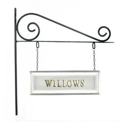 Make your home or business stand out with this classic hanging house sign. The sign comes with a sturdy bracket that can be fixed to the side of your property. Choose the name you want, with the option of having it on both sides at additional cost. Select from a range of quality letters and numbers in a range of finishes. This sign is available in other colours!