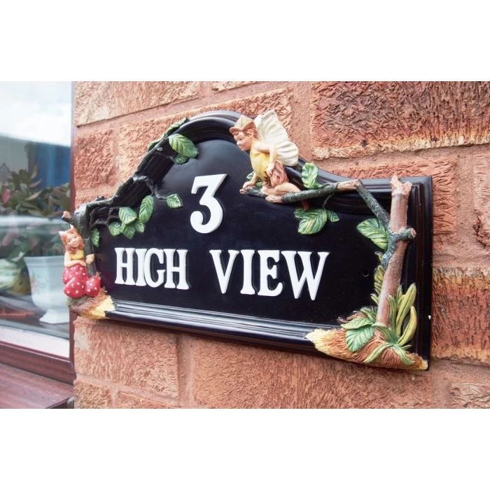 An enchanting scene, the inspiration for this design appears to have been plucked from beloved childhood tales of woodland fairies. Bursting with mythical charm the house sign features a duo of delightful flower fairies, each hand painted in a stunning collection of natural colours.