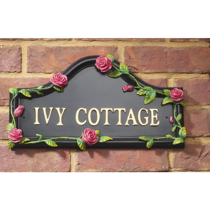 Adorned with beautiful pink rose this plaque is beautifully sculptured and painted by hand.
