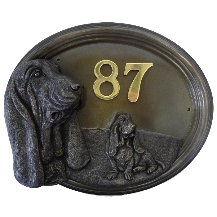 Ponderous, thoughtful and mischievous but loves a fuss. This stunning 3D House Number Sign – Bronze Finish – Basset Hound is sculptured from a durable cold cast material, and has a warm bronze finish, a great way to make your residence more homely.