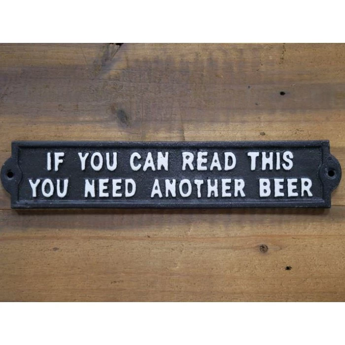 Handcrafted from robust cast iron and finished in a sleek midnight black, this humorous sign is the perfect addition to any bar, pub, or home entertainment area. Complete with bold white ‘IF YOU CAN READ THIS, YOU NEED ANOTHER BEER’ lettering across its front, this sign would look ideal fitted to a wall or wooden bar surface. Supplied with pre-drilled fixing holes for quick and easy installation.