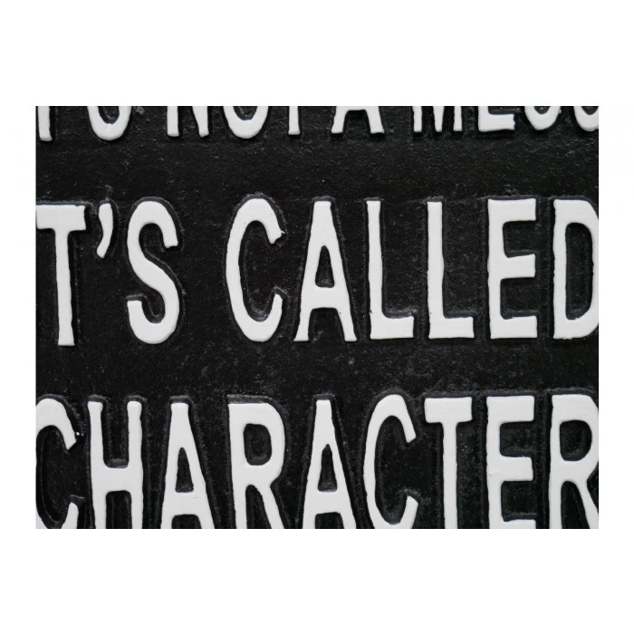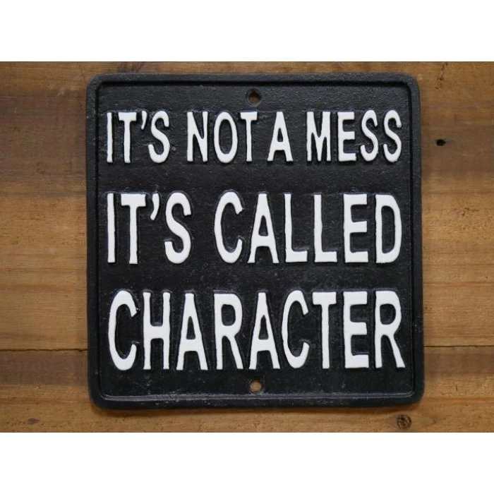 The perfect addition to any home seeking a touch of added personality, this quirky sign has been handcrafted from robust cast iron and finished in a sleek midnight black. Featuring white ‘IT’S NOT A MESS, IT’S CALLED CHARACTER’ lettering adorning its square front, this sign would look perfect placed within any lounge, dining room, or kitchen setting. Complete with two pre-drilled screw holes for easy installation.