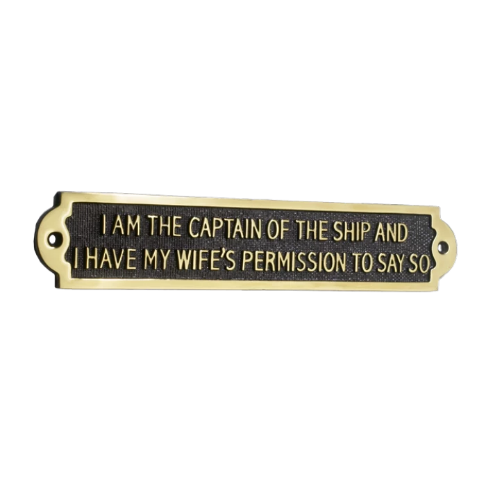 Solid brass “I Am The Captain Of The Ship And I Have My Wife Permission To Say So sign”.