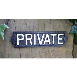 A really authentic styledย Lozenge Shaped Private Sign in Cast Iron,ย a different shaped sign with raised letters dingbats and border, hand painted. This is a real sturdy sign, that will last forever, with minimal maintenance required.