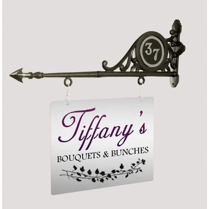 Superb, superior,Victorian style Hanging Shop Sign, complete with Door Number. Hand made of strong, yet lightweight aluminium, this design will make an impressive feature on any shop facia, or frontage. Can also be used in a domestic setting incorporating your house name or road name.