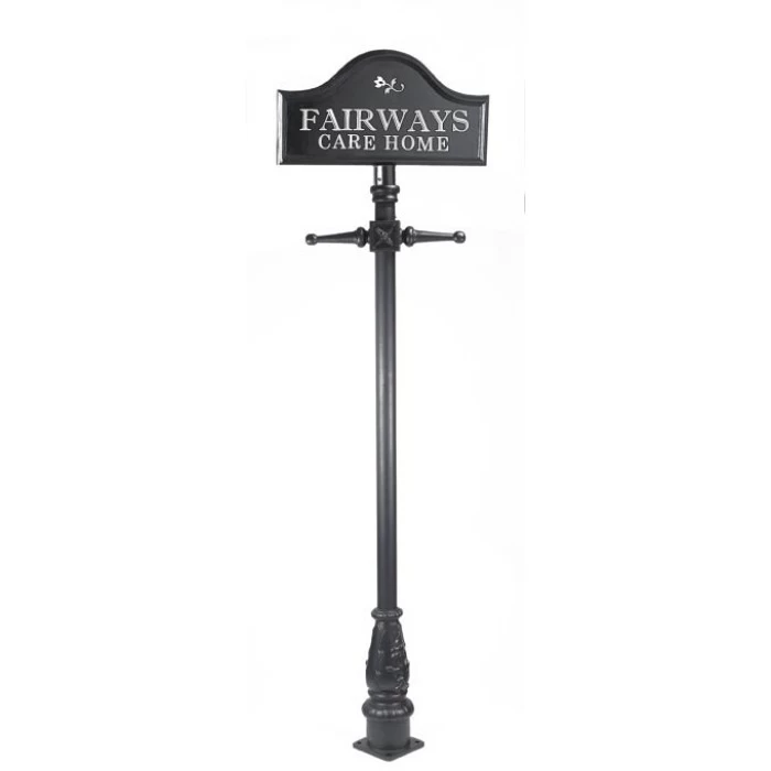 Abundant in understated charm this design is simple in detail lending a simple sense of elegance to your property. Finished in a black powder coat the base is made in iron while the post itself is created from robust rolled steel.
