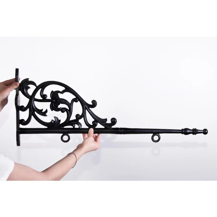 This lovely, vintage, ornate Victorian style, Shop Sign Bracket, has been hand cast and is made of strong yet,lightweight aluminium. It has then been finished in our renowned Black Powder Coat, for good weather protection.