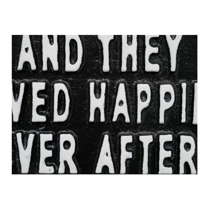 The perfect accessory for any newlywed couple or fairy tale enthusiasts, this charming sign has been handcrafted from robust cast iron and features white ‘AND THEY LIVED HAPPILY EVER AFTER’ lettering adorning its front. Finished in a sleek midnight black to complement any interior setting, this sign has been specifically designed for wall mounting. Complete with two pre-drilled fixing holes for easy installation.