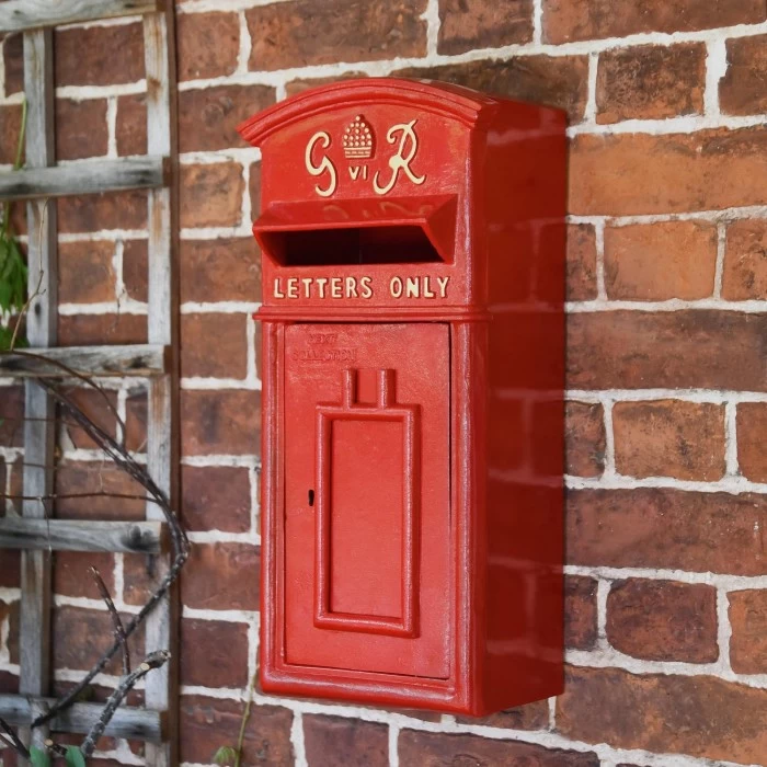 Crafted from a combination of high quality steel and aluminium, this traditional looking post box has been finished in the iconic British Red finish. Designed to be wall mounted in a sheltered area, this post box can easily be placed on any wall, entranceway or column. Complete with hand painted gold lettering and crown motif, this post box has a curved roof, and the hooded aperture allows for letters to be easily deposited within. The lockable door ensures post remains safe and secure within.