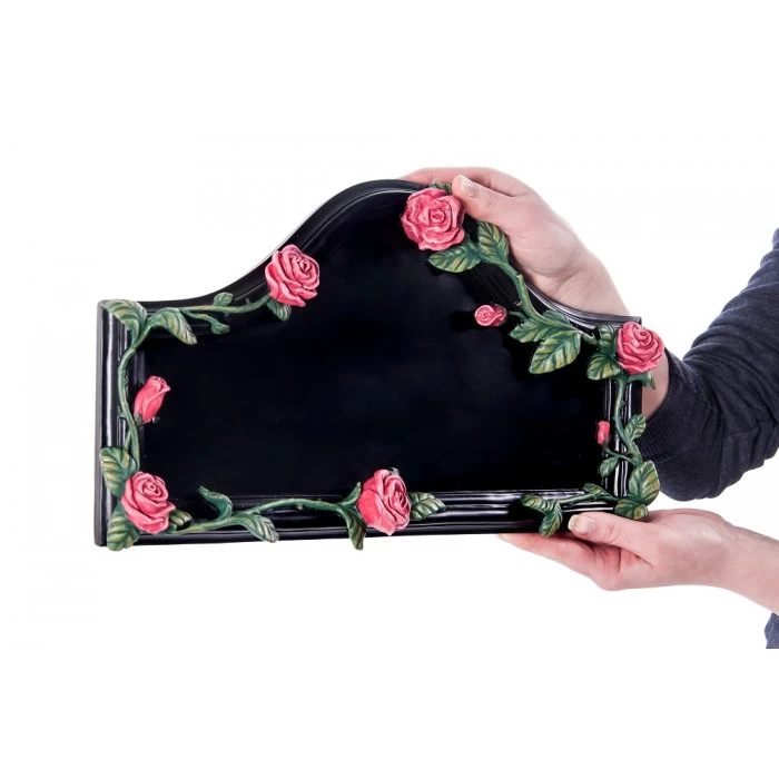 A border of beautifully classical roses adorns this traditional plaque, lending style and charm to any property. Each sculpted rose has been painted by hand so as to frame your chosen lettering with both colour and splendour.
