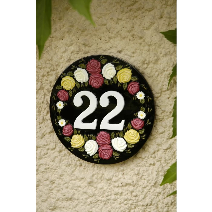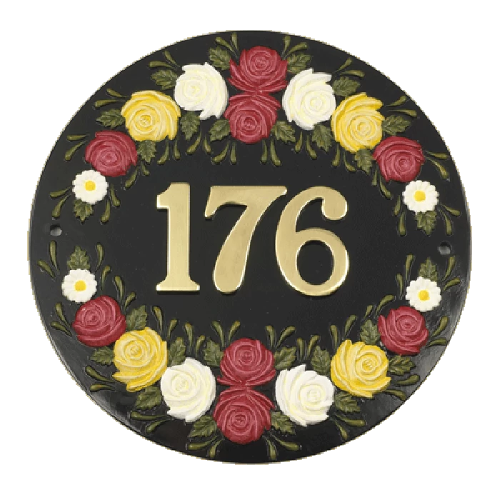 Floral house sign with space to accommodate up to 3 numerals.