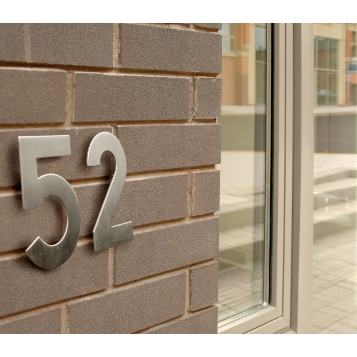 Impressive architectural mild steel numbers cut from sheet metal with concealed suspended fixings, these number and letters seem to float away from the wall.