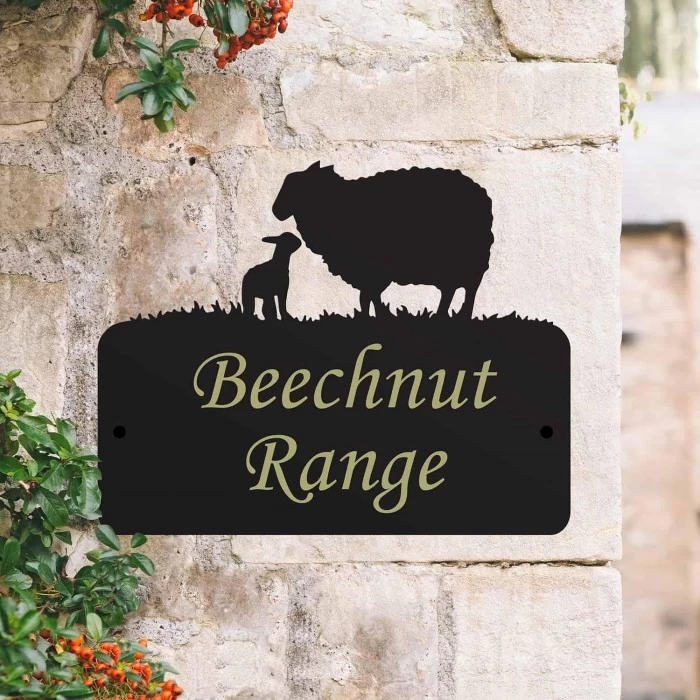 Highly detailed throughout its framework, this entirely unique house sign has been expertly crafted from thick steel and finished in a sleek midnight black to complement any property exterior. Featuring a design featuring a sheep standing alongside a newborn lamb, this house sign would look ideal placed against a brick or painted wall beside a door or entryway. A lovely way to show your love for of animals whilst adding unrivalled character to your home! This sign is ready to be personalised with your house name in your choice of a contrasting gold, silver, or white finish. Simply use the drop-down boxes to select your desired font style and colour.