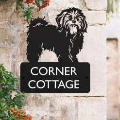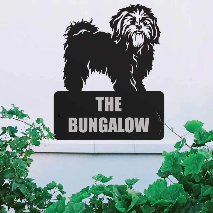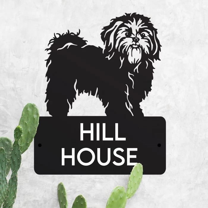 Highly detailed throughout its framework, this entirely unique house sign has been expertly crafted from thick steel and finished in a sleek midnight black to complement any property exterior. Featuring a design featuring a shih tzu in amazing detail, this house sign would look ideal placed against a brick or painted wall beside a door or entryway. A lovely way to show your love of dogs whilst adding unrivalled character to your home! This sign is ready to be personalised with your house name in your choice of a contrasting gold, silver, or white finish. Simply use the drop-down boxes to select your desired font style and colour.