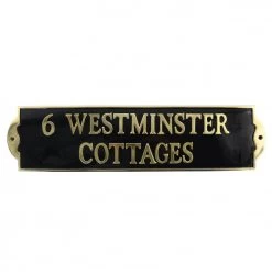 Handcrafted from solid brass and finished in a sleek midnight black with a polished brass trim, this striking house sign would look perfect placed on the exterior of any home. Featuring an elongated rectangular shape, this sign can accommodate up to two lines of your desired brass text and numerals. Complete with two pre-drilled fixing holes for easy installation, this sign would look perfect fitted beside a door or entryway or on the outer columns of a porch. The perfect way to add a touch of modern style to your property for many years to come!