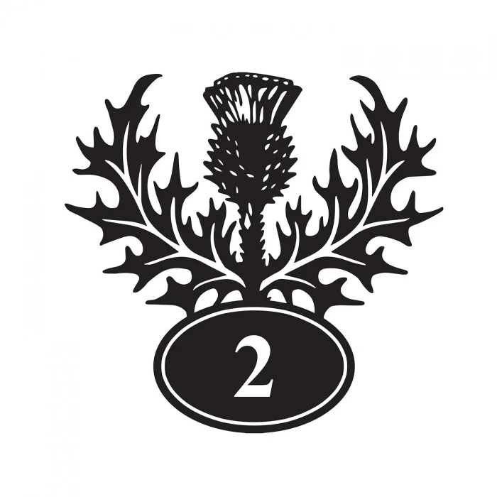 Depicted onto a beautiful and unique house number sign, the Thistle is Scotland’s national emblem denoting bravery, courage, and loyalty. Crafted and expertly cut using high quality iron and finishing in a sleek midnight black finish for suitability and durability. The oval sign can hold up to three large white numbers making viewing from the road and street easy. A wonderful way to show off your Scottish pride whilst complementing the exterior of any home.
